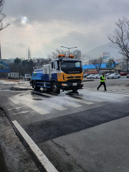 이날 물청소를 위해 농수산물도매시장과 자원순환과 직원 및 환경미화원 등 39명의 인력 및 살수차, 진공차 등 장비 4대가 투입됐다.