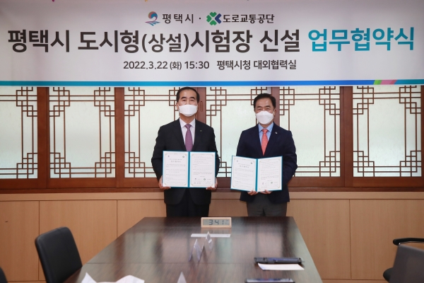[충청뉴스큐] 평택시는 지난 22일 평택시청 대외협력실에서 정장선 시장, 이주민 도로교통공단이사장 등 양 기관의 대표가 참석한 가운데 평택시 도시형 시험장 신설을 위한 업무협약을 체결했다고 밝혔다.