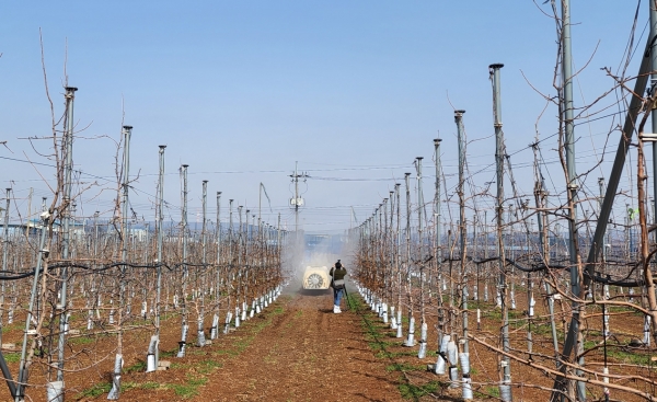 과수화상병 공동방제는 1차로 과수 꽃이 피기 전인 3월 하순, 2∼3차로는 개화 후 예측 시스템의 알림에 의해 총 3회에 약제 방제를 실시할 예정이다.