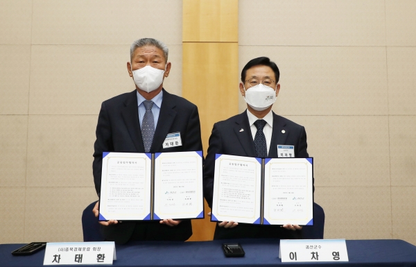 그랜드플라자 청주호텔에서 열린 이날 행사에는 이차영 괴산군수, 차태환 ㈔충북경제포럼 회장을 비롯한 130여명의 포럼회원과 경제인이 참석한 가운데 공동업무협약이 진행됐다.