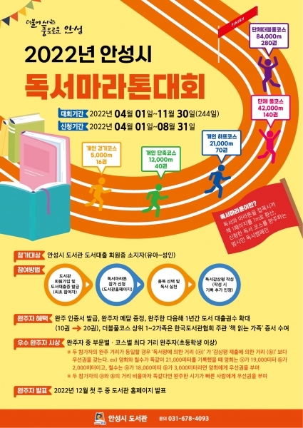 [충청뉴스큐] 안성시는 활발한 독서문화 조성을 위해 오는 4월 1일부터 11월 30일까지 8개월간 ‘2022년 독서마라톤 대회’를 진행한다.