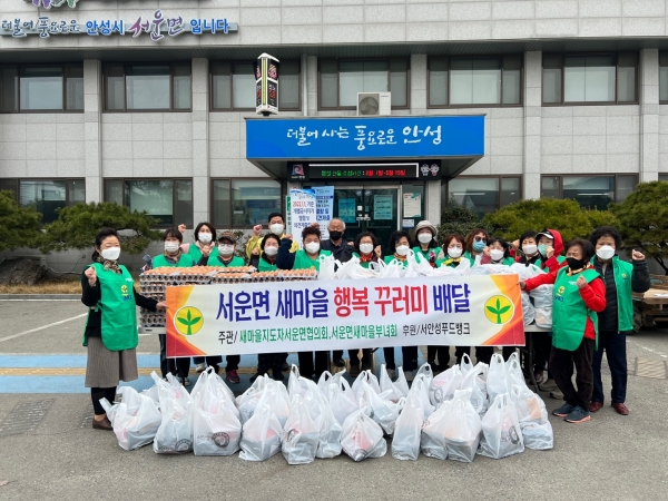 [충청뉴스큐] 안성시 서운면 새마을부녀회에서는 지난 23일 관내 소외 이웃에게 식료품 꾸러미 나눔 봉사활동을 실시했다.