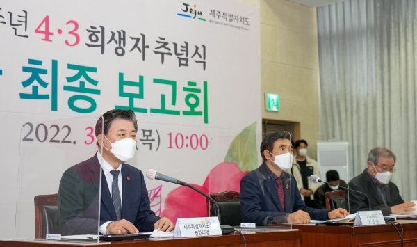 [충청뉴스큐] 제주특별자치도는 제74주년 4·3희생자 추념식의 성공적인 봉행을 위해 24일 오전 10시 제주도청 본관 4층 탐라홀에서 추념식 준비상황 최종보고회를 개최했다.