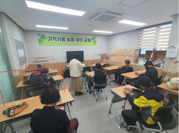 [충청뉴스큐] 충북 영동군은 이달부터 치매 악화를 방지하고 사회적 고립 및 외로움을 예방하기 위해 마련한 치매환자 쉼터 프로그램 운영을 재개한다고 밝혔다.
