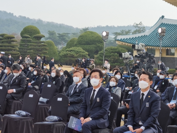 [충청뉴스큐] 허태정 대전시장은 25일 국립대전현충원에 열린‘제7회 서해수호의 날’기념식에 참석해 “목숨을 바쳐 나라를 지킨 영웅들의 고귀한 뜻과 숭고한 희생을 기억하겠다”고 말하며 영웅들을 추모했다.