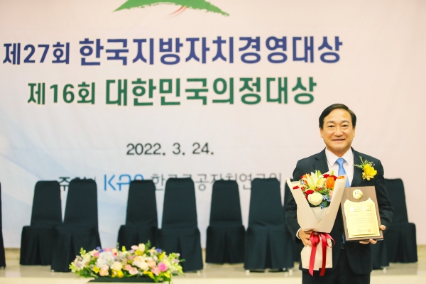 한국공공자치연구원이 주관하는‘대한민국의정대상’은 지역발전 및 주민행정서비스에 대한 의회의 역할을 넓히고 의회의 효율적인 운영과 집행부 견제 및 균형의 역할을 제고하는 한편 의정활동 성과에 대한 인정을 통해 신뢰받는 의회와 의원상을 정립하고자 제정됐으며 서류심사, 인터뷰심사, 수상후보의 적격성여부에 대한 최종 심의를 거쳐 선정된다.