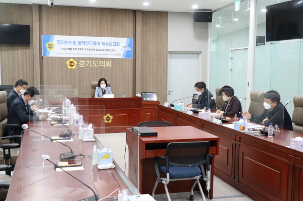 이날 착수보고회에서는 의원연구단체 권정선 회장, 정희시, 이애형 회원과 경기도청 권문주 복지정책팀장 및 연구용역 책임자인 한형서 교수, 공동연구원 소순창 교수 등이 참석했다.
