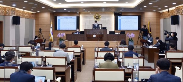 홍선의 의장은 개회사를 통해 “제8대 의회도 어느덧 마지막 임시회를 맞이하게 됐다”며 “지난 4년간 아낌없는 성원과 격려를 보내주신 57만 시민 여러분께 깊은 감사의 말씀을 드린다”고 말했다.