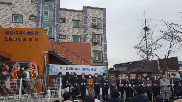 [충청뉴스큐] 평택시 포승읍 원정11리는 25일 평택시장을 비롯한 시·도의원, 기관단체장 등 내빈과 마을주민 약 49여명이 참석한 가운데 마을회관 준공식을 진행했다.
