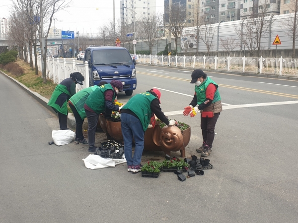 이번 꽃길조성은 겨우내 코로나19로 인해 침체된 분위기를 환기하고 다가오는 봄날에 발맞추어 화사한 도심 분위기를 조성하고자 진행됐으며 관내 도로변 및 도시재생구역을 중심으로 팬지, 비올라 등 6500본을 다양한 색으로 식재해 조화로운 색감의 화단을 조성했다.