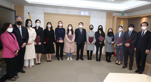 [충청뉴스큐] 청주시는 25일 시청 직지실에서 청주시립예술단 상임단원 9명에게 위촉장을 수여했다.