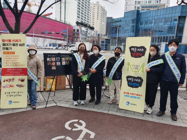 지난 3월 25일 오후 인계동 일원에서 첫 캠페인을 열고 시민들에게 “음식물쓰레기 줄이기에 동참해 달라”고 당부했다.