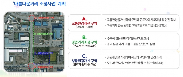 사업이 완료되면 산단 일대가 활력 넘치고 아름다운 거리로 재탄생되어 근로자 및 주민의 편의와 안전성을 높임으로써 지역경제 활성화 및 근로자와 시민의 행복지수 향상에 큰 도움을 줄 것으로 기대되고 있다.