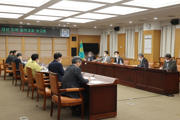 시는 29일 대회의실에서 허태정 대전시장과 공약관련 실·국장이 참석한 가운데, 대선 지역공약 추동력 확보를 위한 보고회를 개최했다.