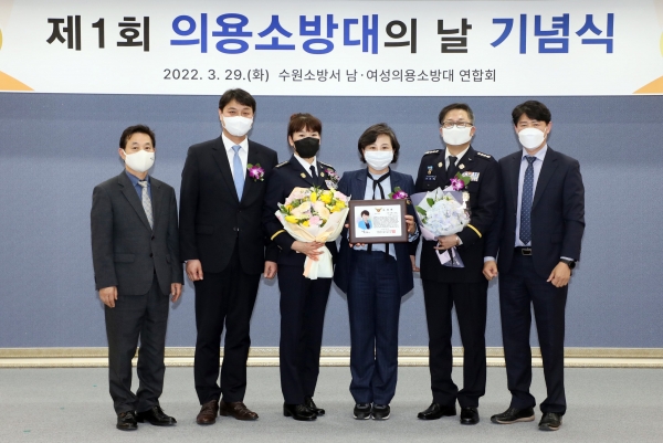 [충청뉴스큐] 김미경 수원특례시의회 의원이 29일 수원소방서 대회의실에서 열린 제1회 의용소방대의 날 기념식에 참석해 수원소방서 의용소방대연합회로부터 표창패를 받았다.