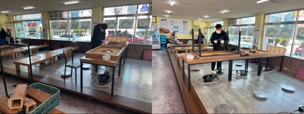 [충청뉴스큐] 아산시가 코로나19로 어려움을 겪고 있는 소상공인을 위해 실시한 ‘음식점 좌식시설 개선 지원 사업’을 완료했다고 지난 29일 밝혔다.