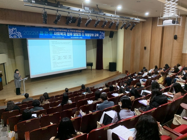 [충청뉴스큐] 아산시가 지난 29일 아산시 청소년교육문화센터에서 읍면동 사회복지 업무 담당자 등 80여명이 참석한 가운데 역량 강화 교육을 진행했다.