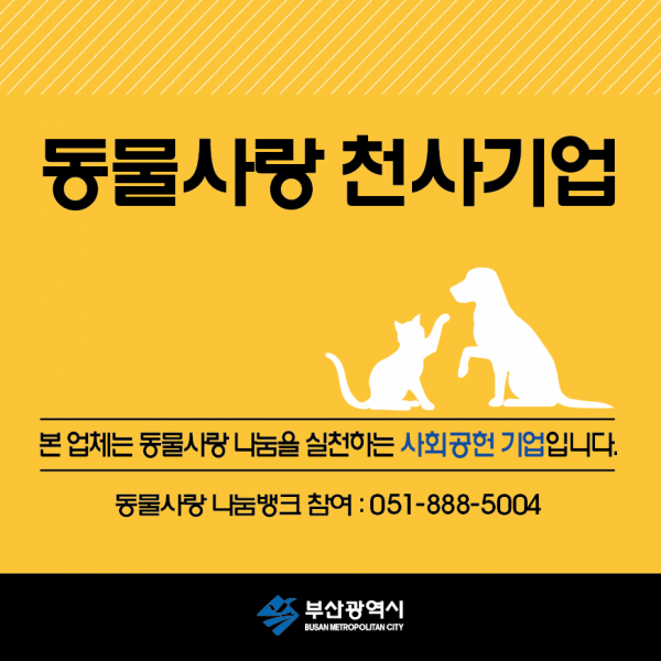 이에 부산시는 지난 2018년부터 반려동물 관련 기업에 기부를 통한 사회공헌을 유도해 동물 복지를 향상하고 아울러 기업의 이미지를 제고해 경쟁력을 강화할 수 있도록 동물사랑 천사기업을 선정해오고 있다.