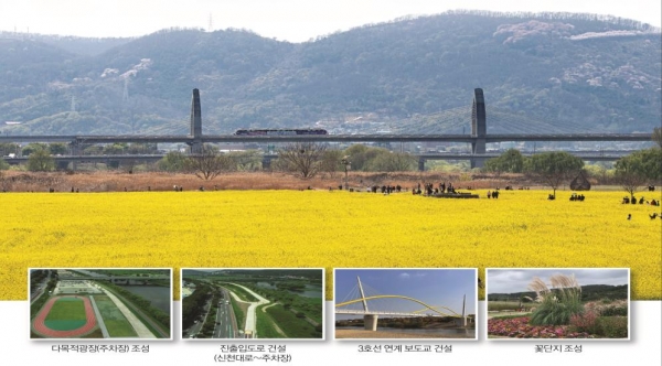 [충청뉴스큐] 대구시는 코로나 이후 시대를 대비해 하중도를 좀 더 쉽게 찾아올 수 있도록 접근로를 확장함과 동시에 코로나19로 지친 시민들에게 일상으로의 시작을 알리는 휴식과 힐링이 될 수 있는 꽃단지를 조성하고 다목적광장 등 편의시설을 마련했다.