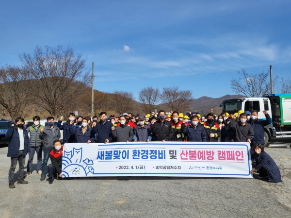 [충청뉴스큐] 아산시 환경녹지국 직원과 산불예방전문진화대, 둘레길관리원 등 60여명이 새봄을 맞이해 지난 4월 1일 송악궁평저수지에 모여 환경정화 활동 및 산불 예방 캠페인을 펼쳤다.
