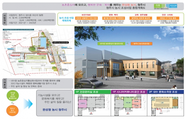 청주시 관계자는 "통합 청주시 출범 이후 읍·면 중심지 활성화를 위해 지속적인 정주여건 사업을 추진하고 있다"며 "앞으로도 시는 농촌지역주민들이 쉽게 체감하고 삶의 질에 직접 영향을 미치는 지역밀착형 생활 SOC사업을 적극 발굴·추진할 계획”이라고 말했다.