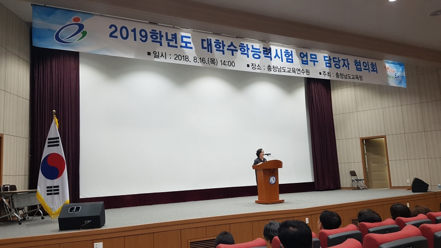 충남도교육청(교육감 김지철)은 16일 충남교육연수원에서 도내 고등학교 교감, 3학년부장, 시험지구교육청 수능업무 담당자 등 280여명이 참가한 가운데 2019학년도 대학수학능력시험 업무담당자 협의회를 개최했다. 이날 협의회는 2019학년도 대학수학능력시험 업무처리 지침에 대한 안내, 수능원서접수 시스템 활용에 대한 연수, 기타 수능관련 전달사항, 질의 응답 순으로 진행됐다. 11월 15일에 실시하는 2019학년도 대학수학능력시험은 오는 8월 23일부터 9월 7일까지 응시원서 접수를 시작으로 시험장 배치, 수험번호 부여, 방송시설 점검 등 본격적인 시험 준비에 나서게 된다. 충남도교육청 가경신 학교정책과장은“모든 수험생들이 원서접수 및 수능준비에 불편함이 없고 수능시험에서 자신의 능력을 최대한 발휘할 수 있도록 배려해 주기 바란다”고 했다. 충남도교육청 관계자는“충남도청, 충남지방경찰청, 한국전력공사 대전충남본부, 소방서 등 유관기관과의 긴밀한 협업을 통하여 2019학년도 수능도 무결점으로 치르기 위해 최선을 다할 것”이라 했다.