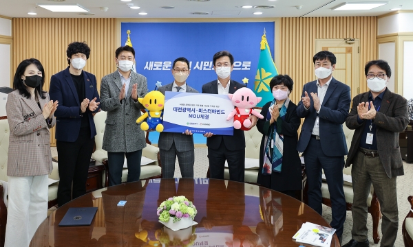 [충청뉴스큐] 대전시는 4일 오후 접견실에서 미스터마인드주식회사와 지역사회통합돌봄 대상 어르신 등을 위한 ‘AI 말 동무, 돌봄로봇 시범사업’을 위한 업무협약을 체결했다.