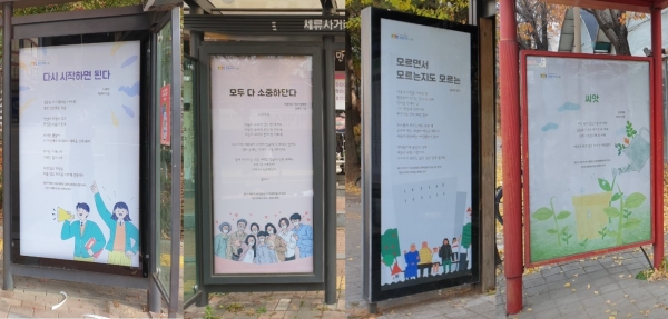 ‘인문학 도시’를 만들어가고 있는 수원시는 2013년부터 버스정류장에 공모를 거쳐 선정한 시민들의 창작 시와 예술인들의 재능기부 작품을 게시해 시민들에게 호응을 얻었다.