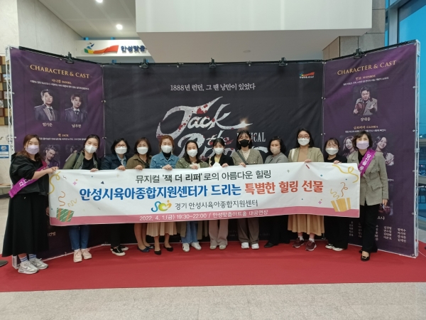 [충청뉴스큐] 안성시육아종합지원센터에서는 지난 4월 1일 보육교직원의 힐링 프로그램으로 어린이집 보육교직원 100여명을 대상으로 안성맞춤아트홀에서 진행하는 뮤지컬 ‘잭 더 리퍼’ 관람을 추진했다.