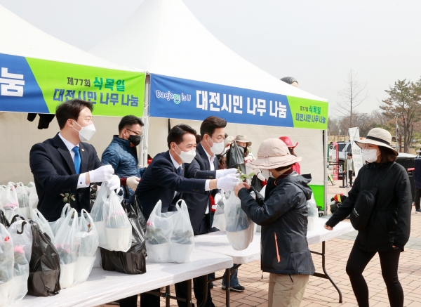이날 행사에서 권중순 의장은 허태정 대전시장, 대전시의회 박수빈 의원, 어린이 6명 등과 함께 시립미술관 앞 녹지공간에 느티나무를 식재하며 식목일을 기념했다.