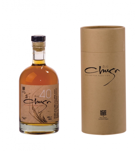 ‘추사40’은 예산사과를 증류해 프랑스의 칼바도스와 동일하게 오크통에서 숙성시킨 사과증류주로 사과의 은은한 풍미가 느껴지며 바닐라향과 초콜릿향이 어우러져 끝맡이 깔끔하다는 평가를 받고 있다.