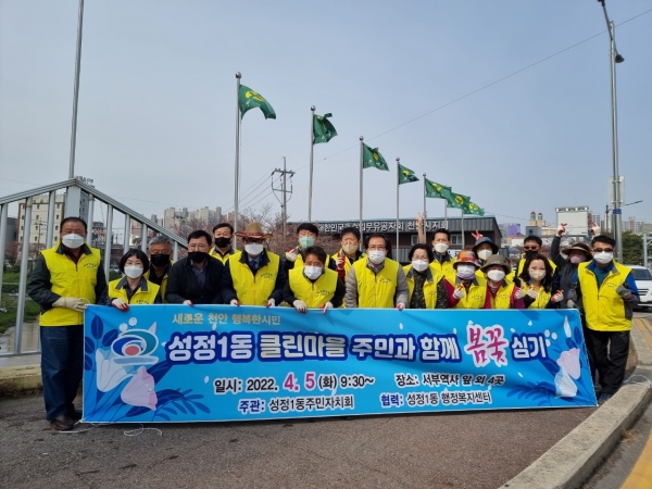 [충청뉴스큐] 천안시 성정1동 주민자치회는 지난 5일 주민자치 활성화 및 깨끗한 마을 조성을 위해 주민총회 의제인 클린마을 ‘주민과 함께 봄꽃 심기’ 사업을 진행했다고 밝혔다.