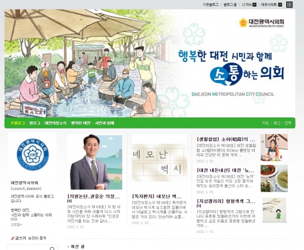 유튜브를 통해서는 회기운영, 현장방문, 토론회 등 의정활동 동영상을 제공하게 되고 블로그로는 의정소식 외에도 대전명소, 생활칼럼, 독자 편지 등 시민의 소소한 생활 등을 전하며 친숙한 서비스를 제공해 보다 적극적인 시민참여와 의견을 들을 수 있는 소통의 창구 역할을 하게 될 것으로 기대된다.