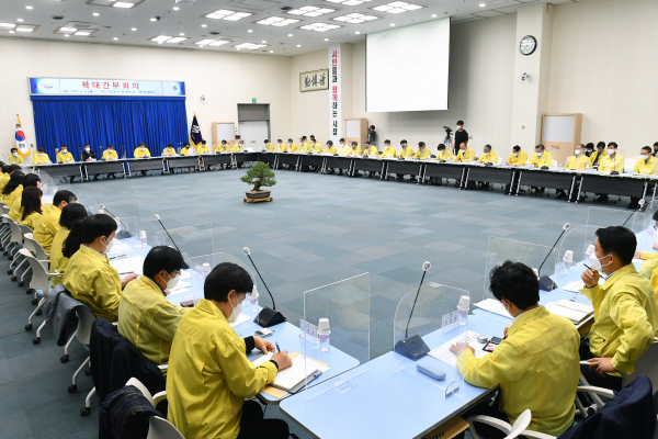 오늘 회의에는 박형준 부산시장을 비롯한 부산시 소속 각 실·국·본부장 및, 구·군, 공사·공단, 출자·출연기관 관계자 등 60여명이 참석해 코로나19 대응 상황 등 시정 주요 현안 공유 민생·경제안정 대책 마련 ‘따뜻한 공동체가 만드는 15분 도시 부산’에 대한 기관별 추진상황 보고 등과 함께 자유롭게 의견을 주고받았다.