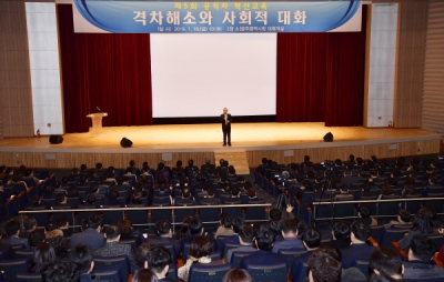 문 위원장은 “돌이켜 보면 노동운동은 정의로운 투쟁인데도 현재 노동자 임금이 대기업 100, 중소기업 50으로 격차가 벌어진 것이 기막힌 현실이다”며 “기업별 노조를 하다 보니 지불능력이 있는 대기업만 임금이 올라가고 그 부담은 중소기업과 비정규직 노동자들에게 내려왔기 때문이다”고 지적했다.