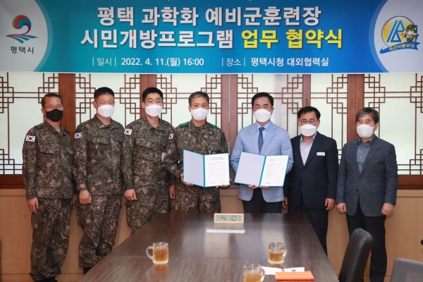 [충청뉴스큐] 평택시는 지난 11일 육군 3075부대 169여단과 평택 과학화 예비군훈련장을 평택시민에게 개방하는 내용을 담은 업무협정을 체결했다고 밝혔다.