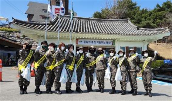 소대원들은 예당관광지 일대를 돌며 쓰레기 수거 등 환경정비활동에 참여하는 등 구슬땀을 흘렸다.