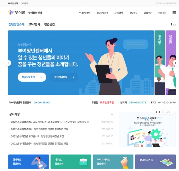 부여군은 청년을 위한 온라인 플랫폼인 ‘부여청년센터 홈페이지’를 오는 6월 가동할 방침이다.