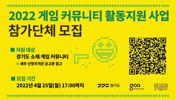 [충청뉴스큐] 경기도와 경기콘텐츠진흥원은 오는 25일까지 지역 게임문화 활성화를 위해 ‘2022 게임 커뮤니티 활동지원’ 참가단체를 모집한다고 15일 밝혔다.