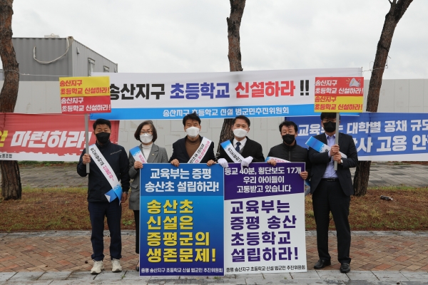 그동안 증평군의회에서는 지난해 5월 송산초 신설 촉구 성명을 발표하고 6월에는 괴산증평교육청을 직접 방문했다.