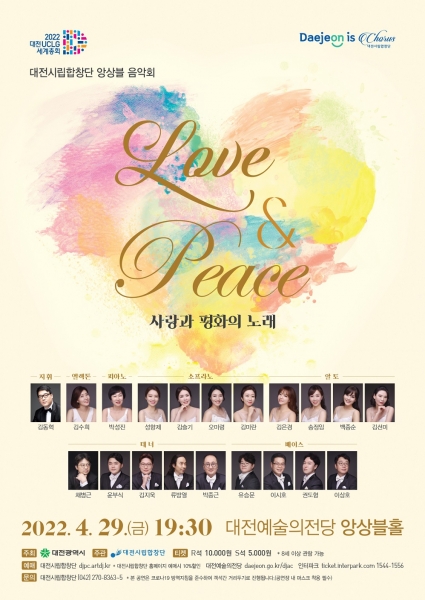 [충청뉴스큐] 대전시립합창단 앙상블 음악회‘사랑과 평화의 노래’가 4월 29일 금요일 오후 7시 30분 대전예술의전당 앙상블홀 무대에 오른다.