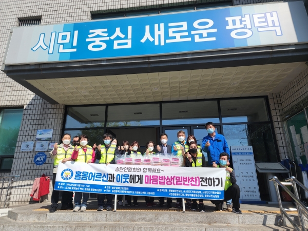 [충청뉴스큐] 평택경찰서 서정지구대 송탄협력단체연합회는 지난 16일 홀몸어르신과 이웃에게 전해달라며 마음밥상 40개를 평택시 중앙동행정복지센터에 전달했다.