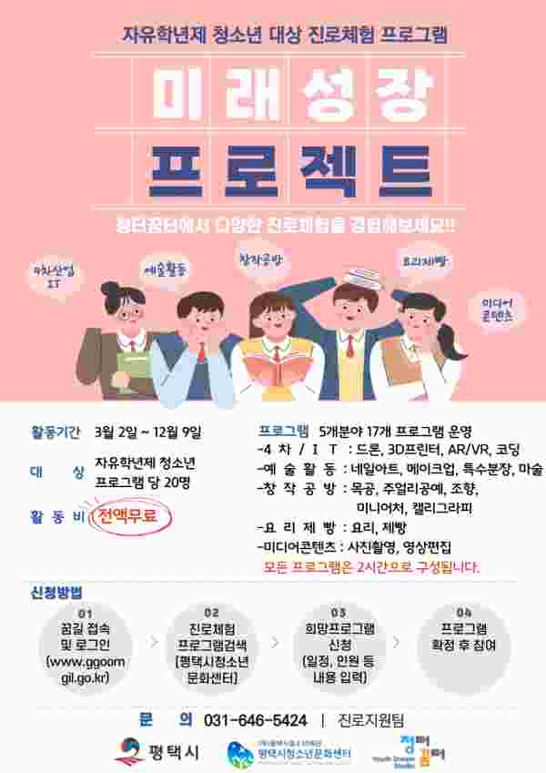 2021년부터 평택혁신교육지구 사업으로 진행한 ‘미래성장 프로젝트’는 자유학년제와 연계해 관내 중학교 1학년 학생을 대상으로 5개 분야 17개 프로그램을 제공하는 진로 프로그램이다.