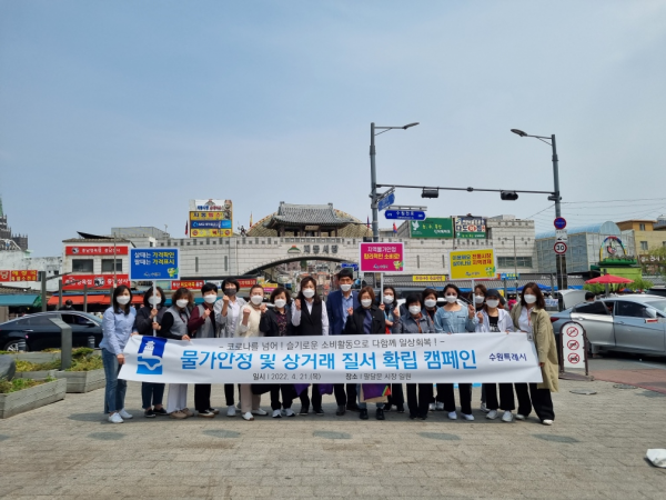 [충청뉴스큐] 수원시가 소비자교육중앙회 수원시지회와 함께 21일 팔달문시장 일원에서 ‘물가 안정 및 공정한 상거래 질서 확립 캠페인’을 펼쳤다.