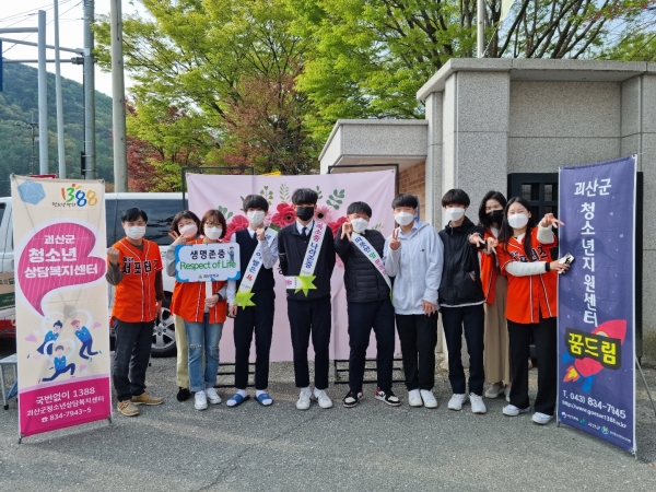 학생들의 등하교 시간에 이루어진 이번 캠페인은 괴산중학교 학생자치회와 괴산군청소년상담복지센터가 함께 참여했으며 코로나19로 인한 사회적 고립감과 새 학기 적응으로 인한 우울·불안 등 정서적 어려움을 겪고 있는 청소년들에게 스트레스를 이겨내고 생명존중의 중요성을 일깨우고자 진행됐다.