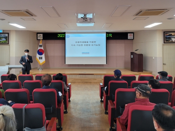 유기농업의 개념, 유용미생물의 종류, 농업에서의 역할, 현장 적용 사례 등 농업에서 미생물의 주요 작용과 효과적인 활용 방법 등에 유용미생물의 올바른 사용에 대한 내용으로 교육이 진행됐다.