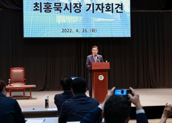 [충청뉴스큐] 최홍묵 계룡시장은 26일 계룡문화예술의 전당 다목적 홀에서 이케아코리아의 입점 허가 취소 신청에 따른 기자회견을 열고 시의 입장을 밝혔다.