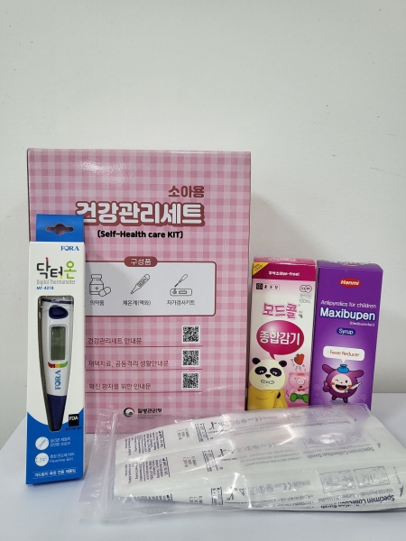 소아용 키트는 해열제, 감기약, 체온계, 자가검진키트 총 4가지 종류로 구성돼 있으며 이 중, 자가검진키트는 수급이 불안정할 시 공급이 중단될 수 있다.