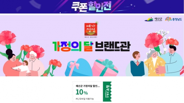 [충청뉴스큐] 예산군은 5월 ‘가정의 달’을 앞두고 온라인 우체국쇼핑몰과 협업해 가정의 달 브랜드관 개설 및 지역농특산물 특별할인행사를 진행하는 등 판매 확대에 나선다.