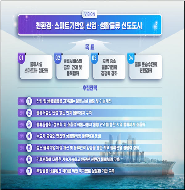 울산시는 최근 생활물류 서비스 수요가 급증하고 물류산업이 친환경·스마트화 되는 등 물류산업 환경이 급격히 변화함에 따라 이번 계획을 ‘친환경·스마트 기반의 산업·생활물류 선도도시’라는 이상으로 제시했다.